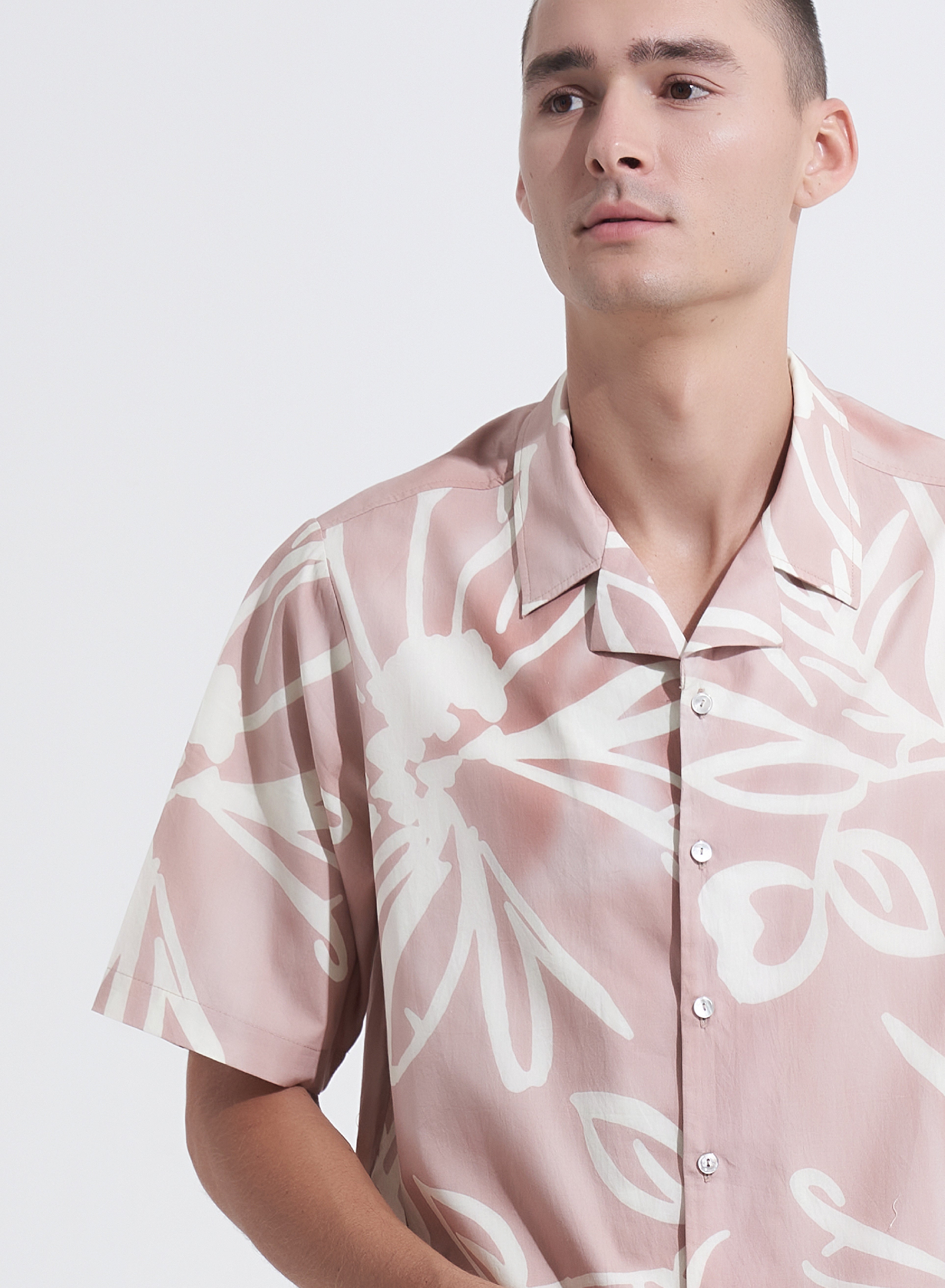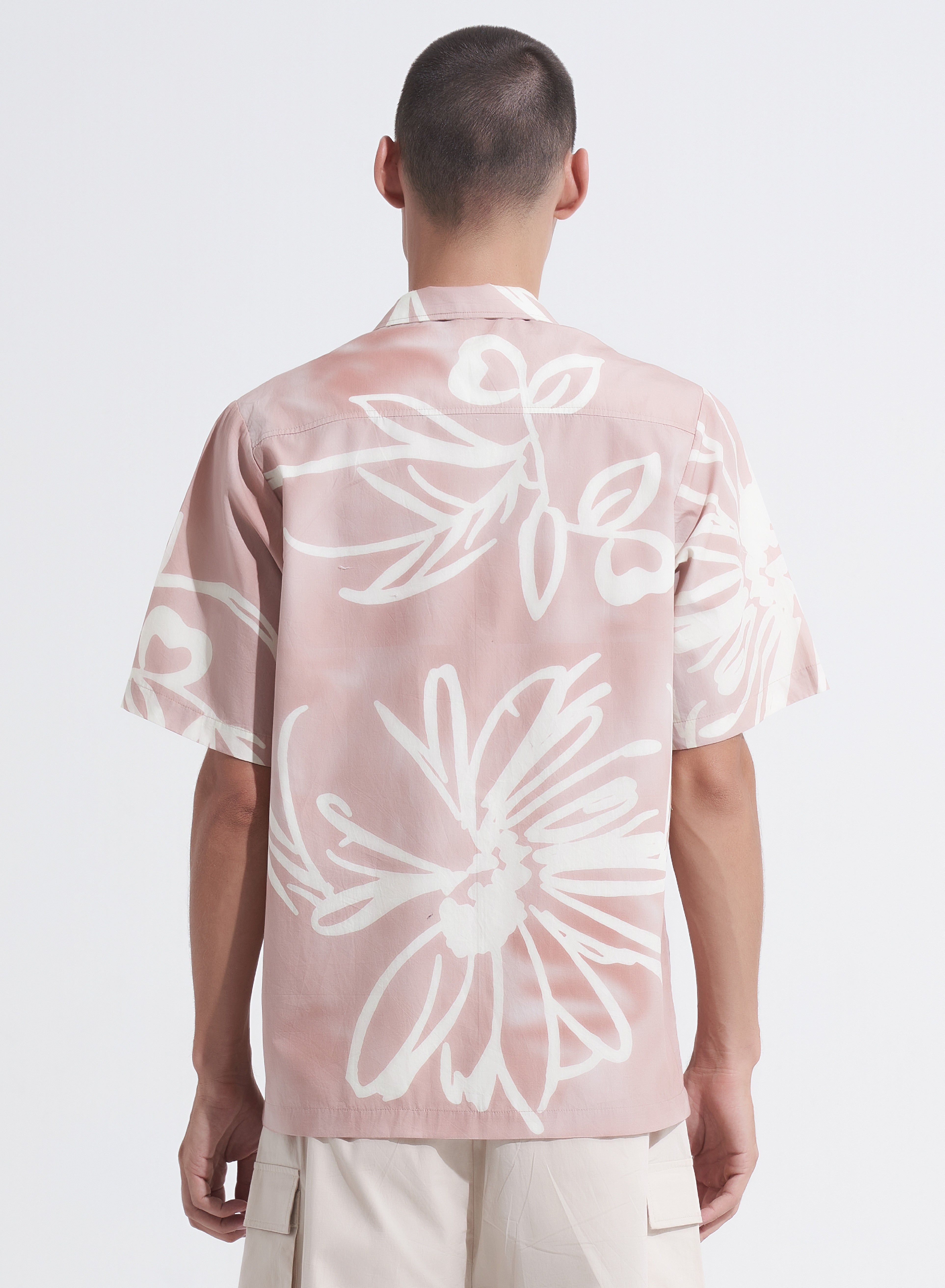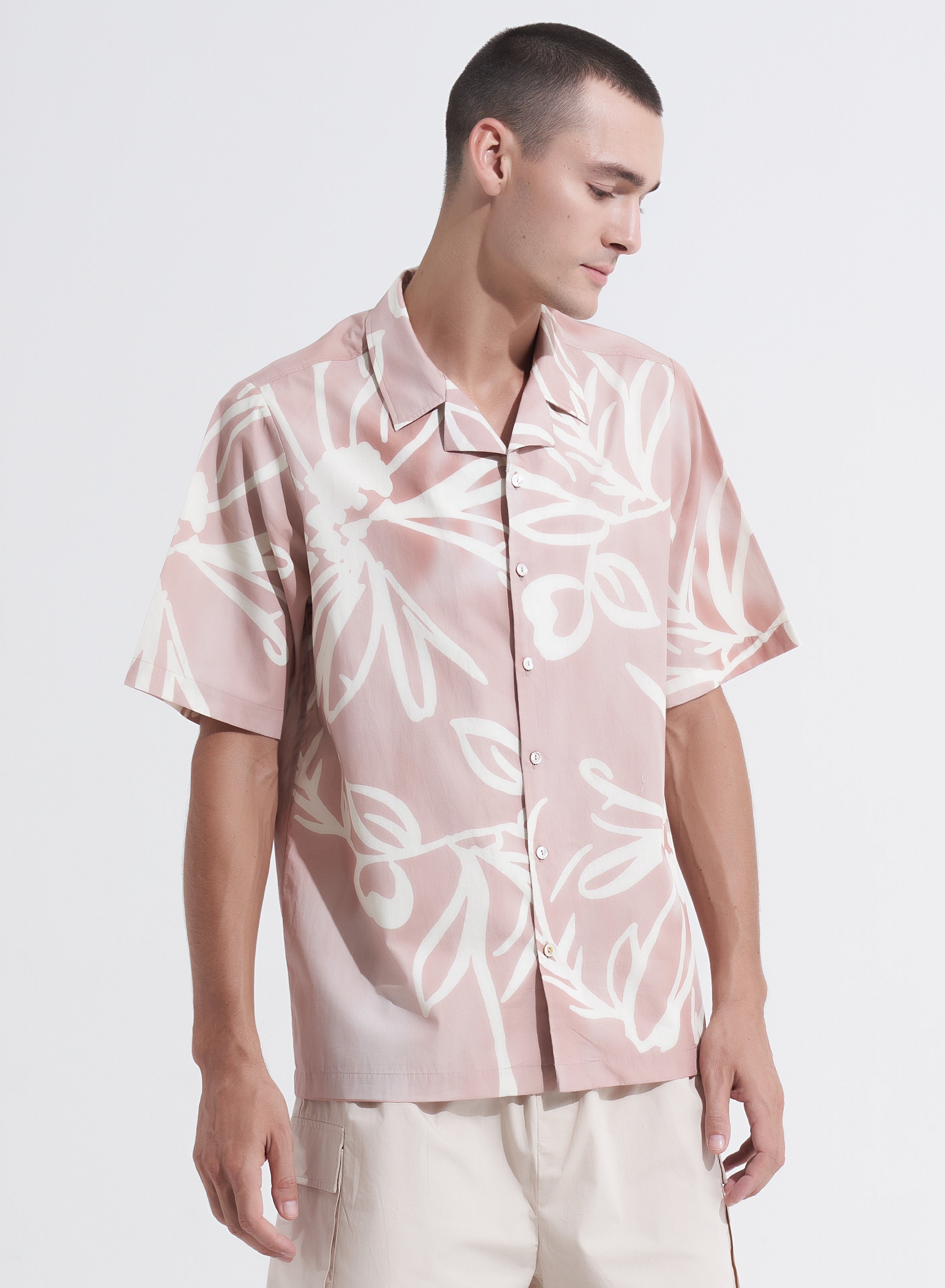 The Rey Shirt shows off a playful baby pink color and a fun motif that captures Valentine’s vibes. It features a sharp notched collar and a loose, relaxed silhouette, making it perfect for easygoing days or casual dates.