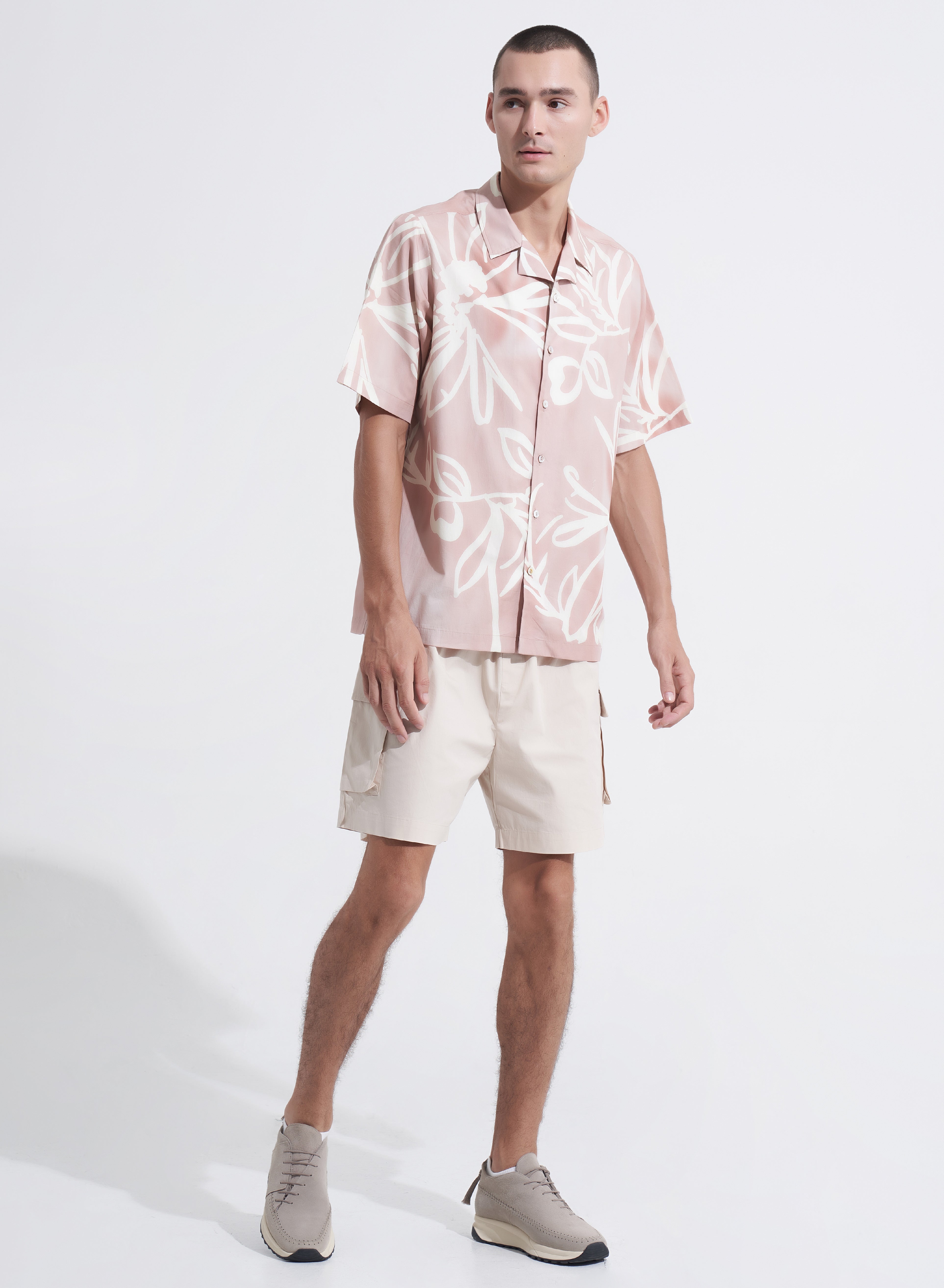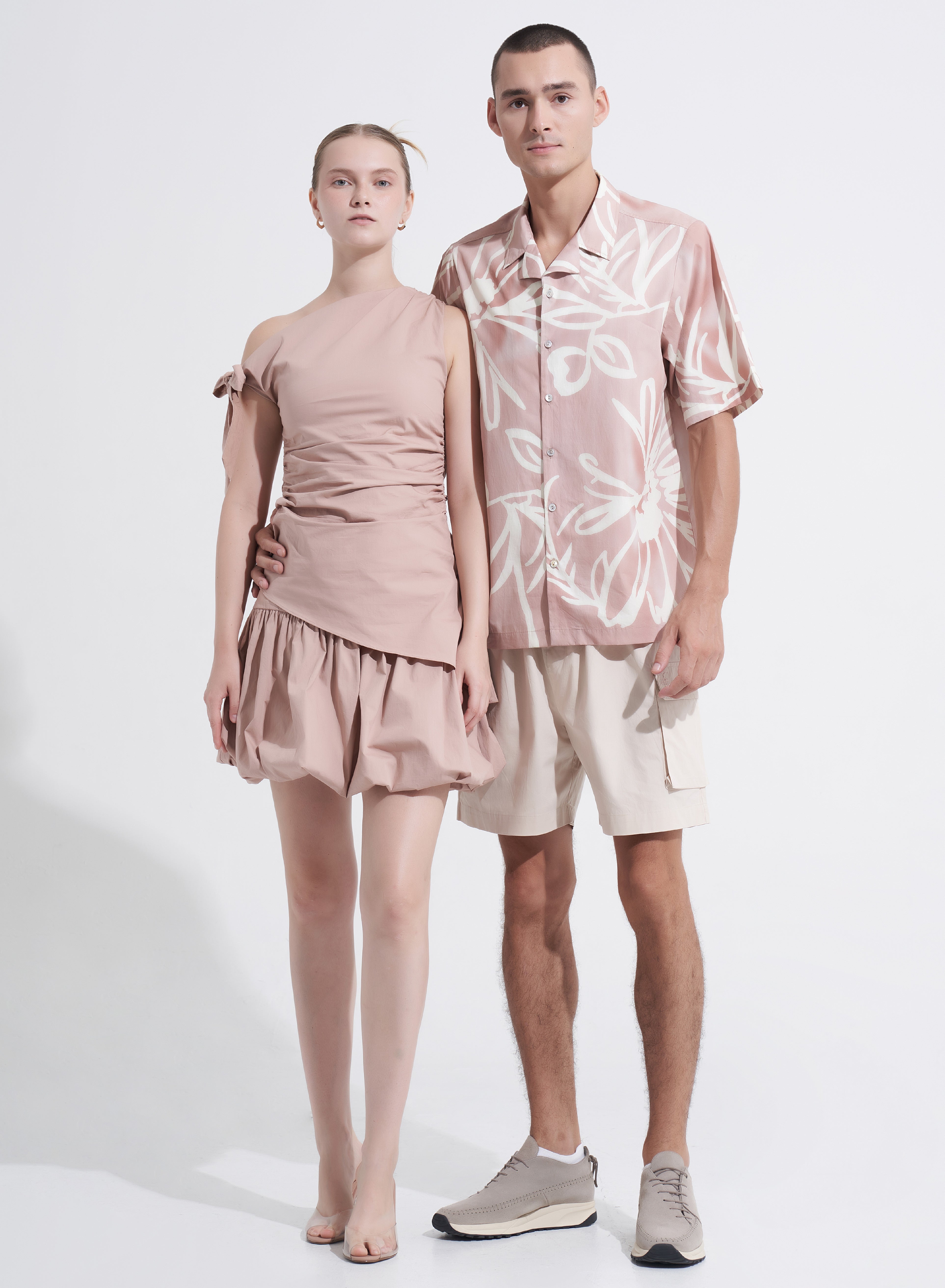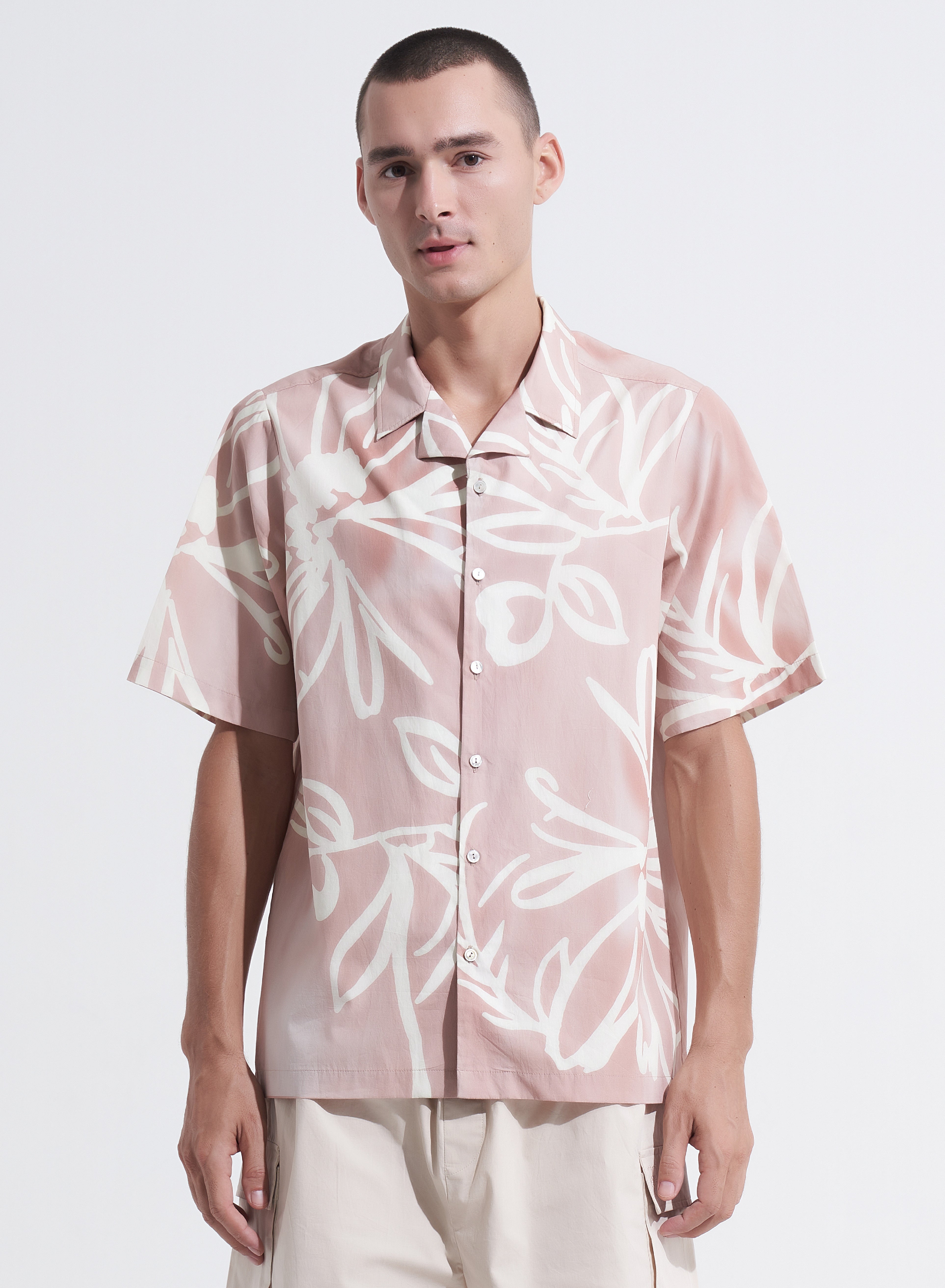 The Rey Shirt shows off a playful baby pink color and a fun motif that captures Valentine’s vibes. It features a sharp notched collar and a loose, relaxed silhouette, making it perfect for easygoing days or casual dates.