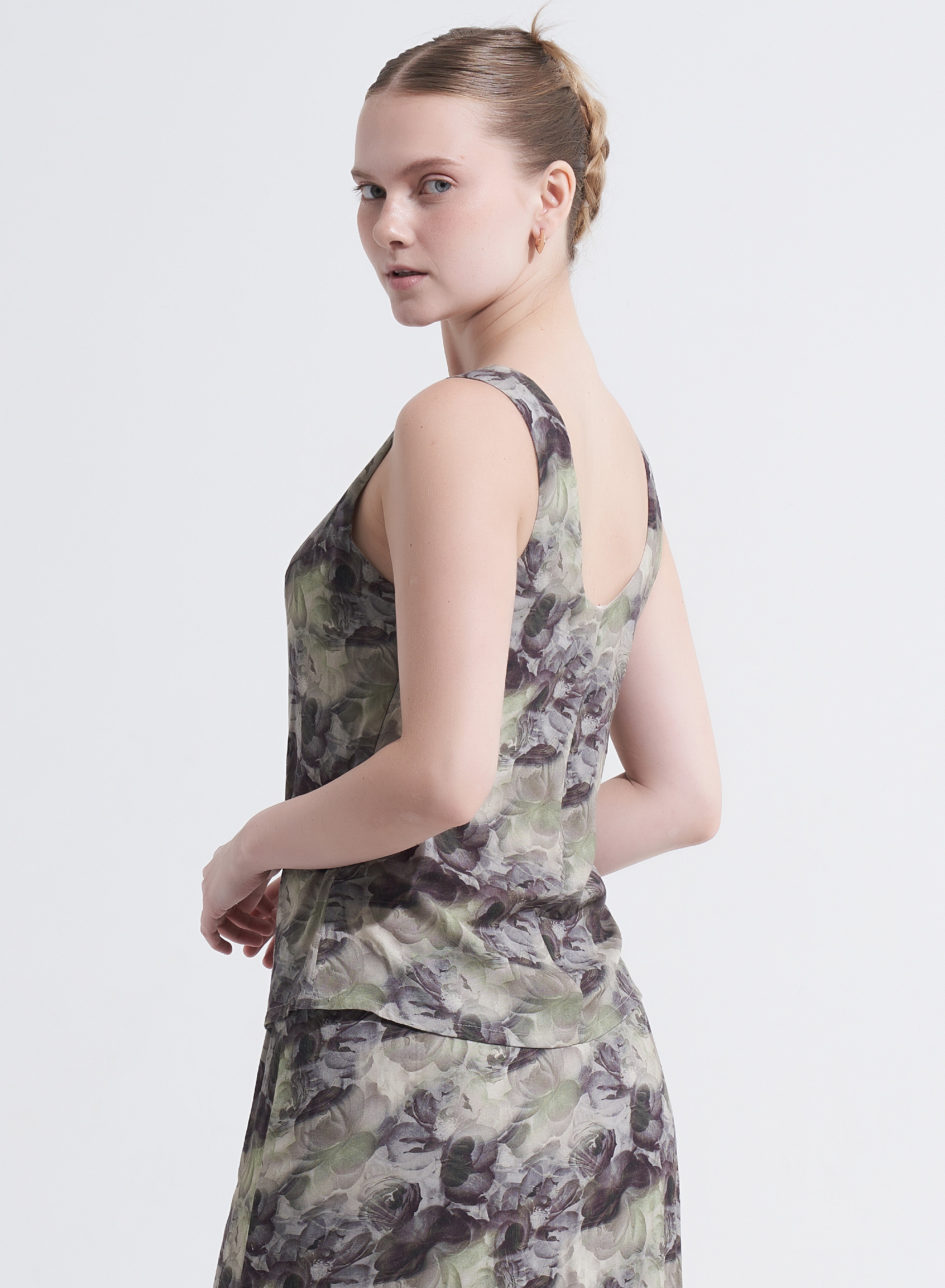 Ready to make a statement? The Marlin Top blends style and sustainability with its body-fit silhouette, round neckline, and low back. The sustainable print gives it a bold, unique vibe. Want to complete the look? Pair it with the matching Marlin Maxi Skirt for a coordinated, standout outfit.