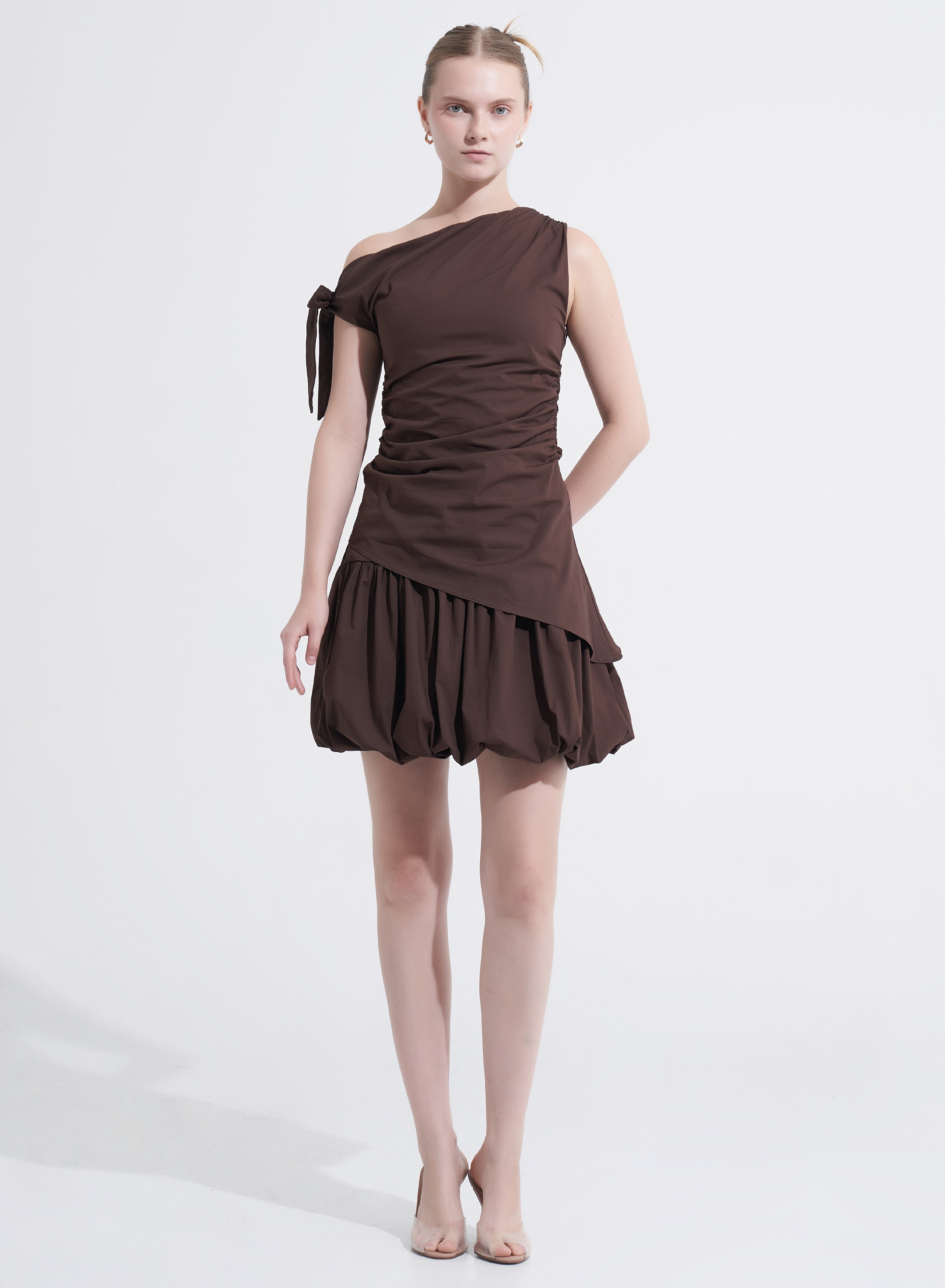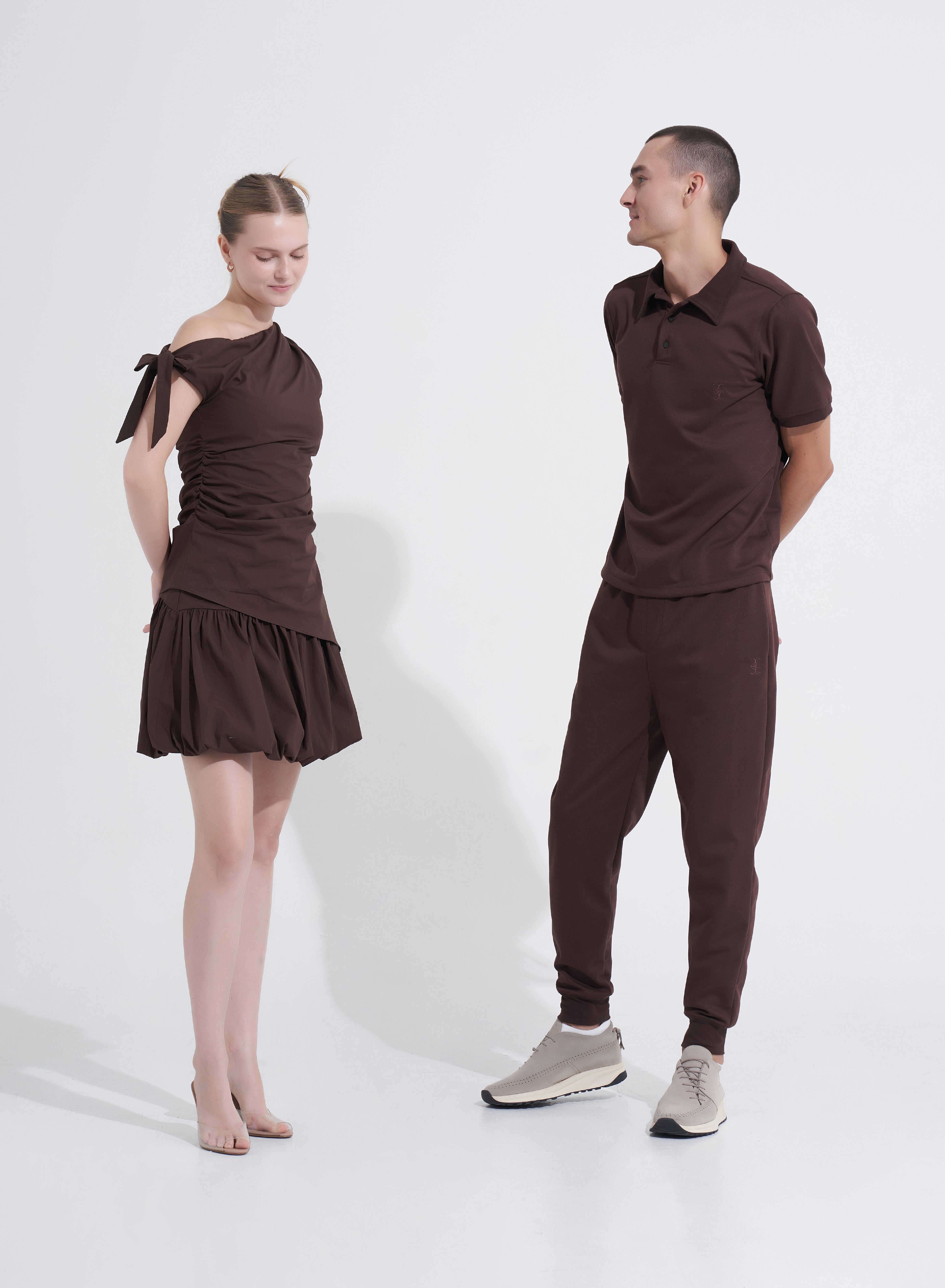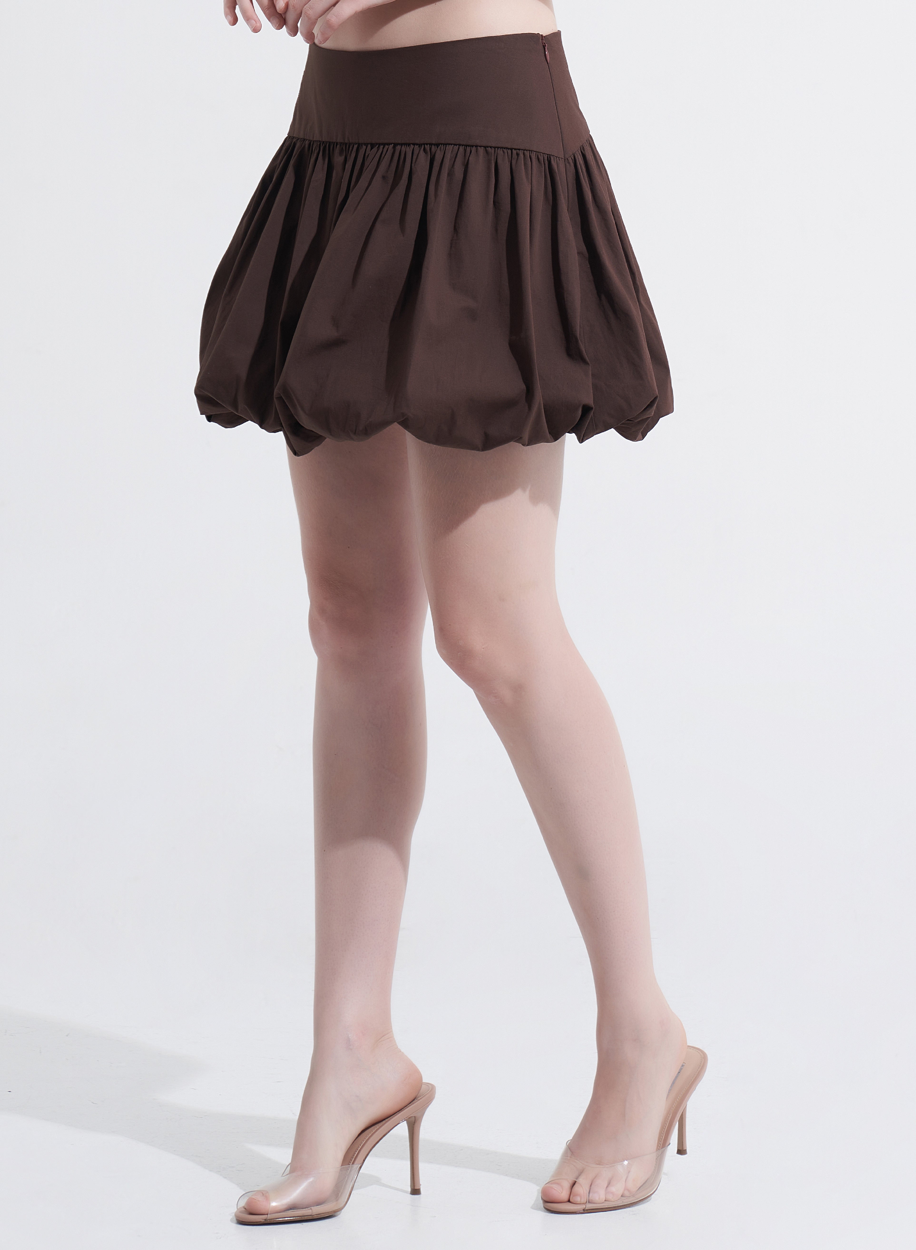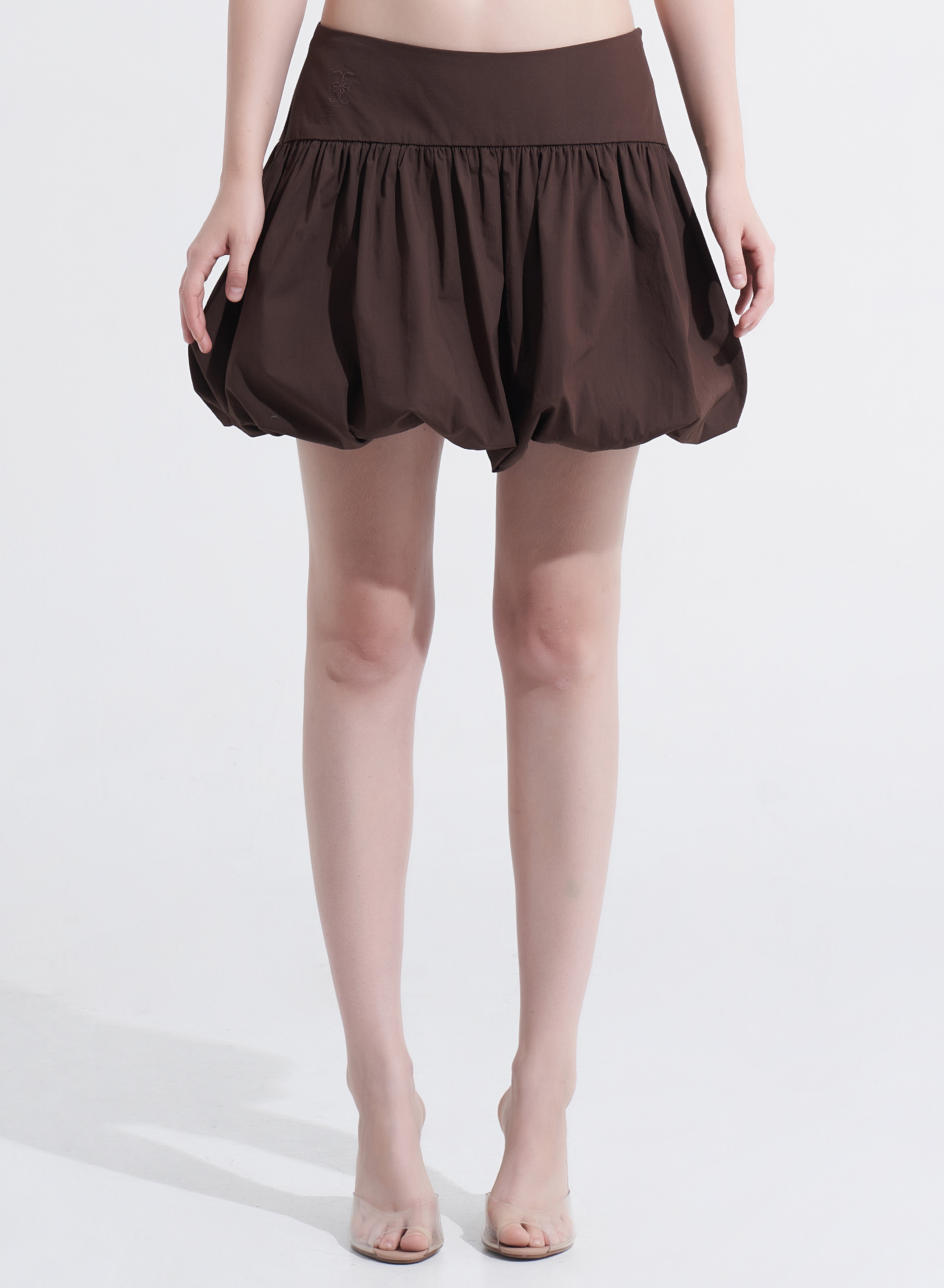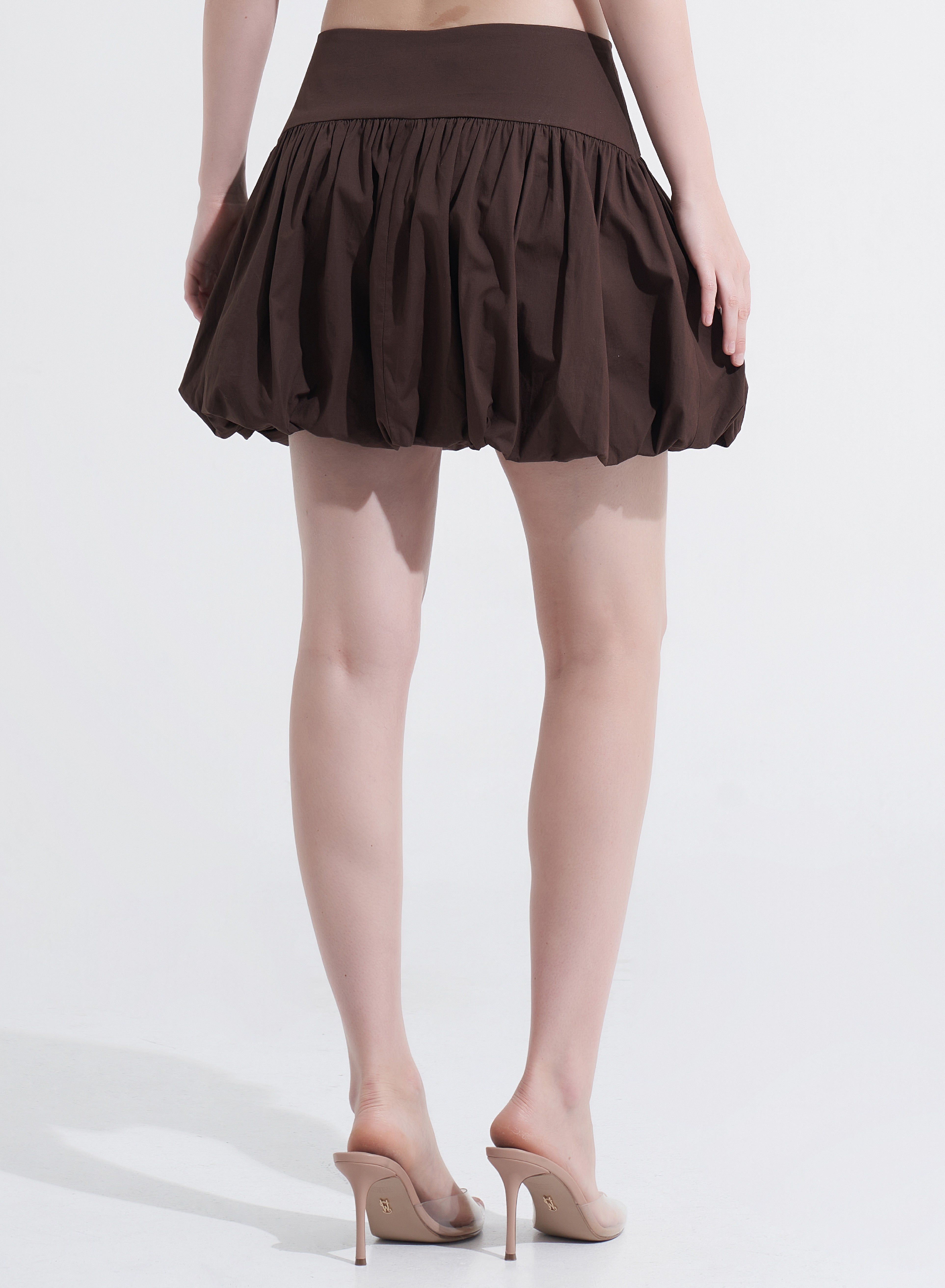 With its balloon silhouette and asymmetric waistband, the Amanda Mini Skirt offers a bold, fashion-forward look. Available in baby pink and brownie, this skirt is perfect for pairing with the Lorena Top or creating your own chic, playful outfits.